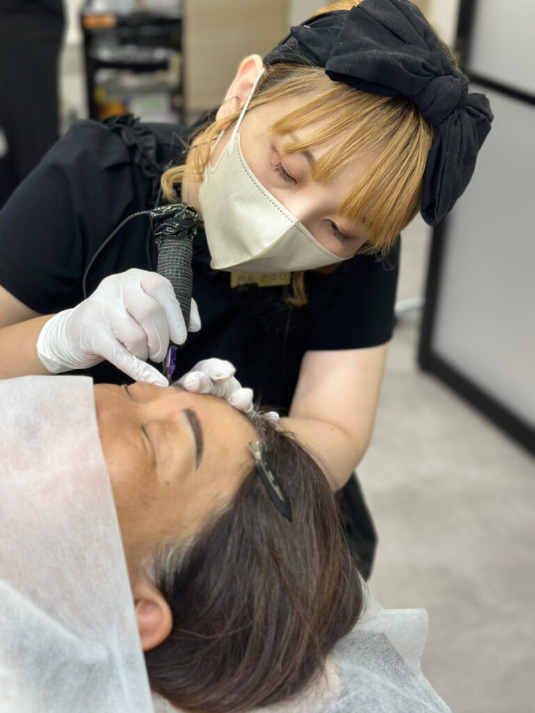 その後、人間関係の悩みから休職した時期に、今後の仕事について考え直し、再びアートメイクについて調べ始めました。そして、一大決心をしてアートメイクスクールの門を叩き、今では「アートメイクはまさに天職!」と胸を張って語る人気アーティストとして活躍されています。
