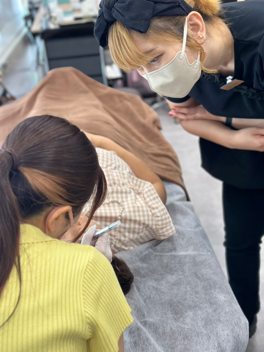 「看護師として働きながらスクールに通う人が多い中で、私はアートメイク一本だったので練習時間だけは負けたくない、そう思って1日6時間は練習しました。」