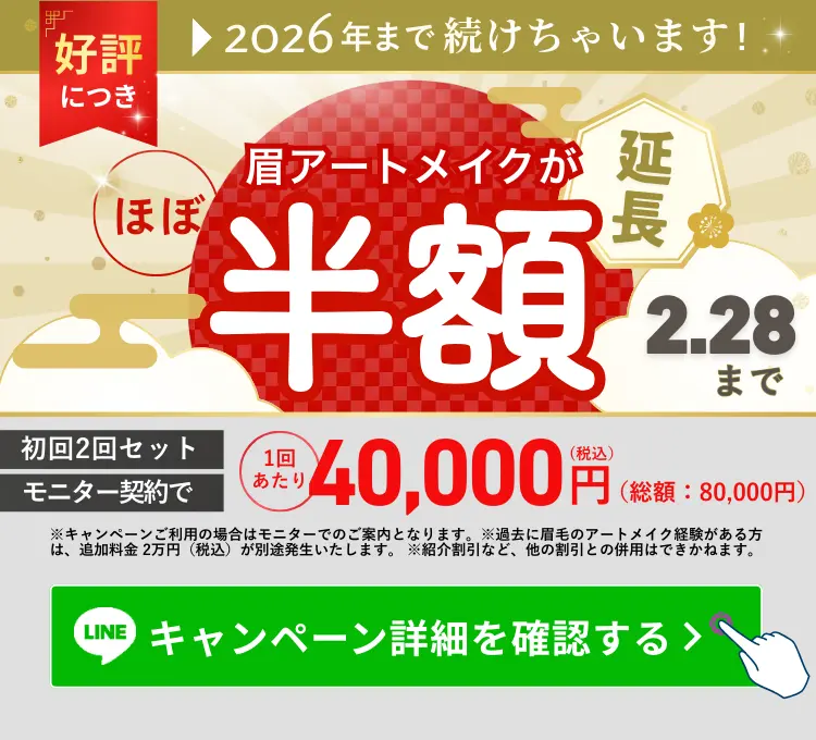 最終施術より2ヶ月以内かつ、同じ担当者に限り、1回のみ22,000円でリタッチを受けられます。