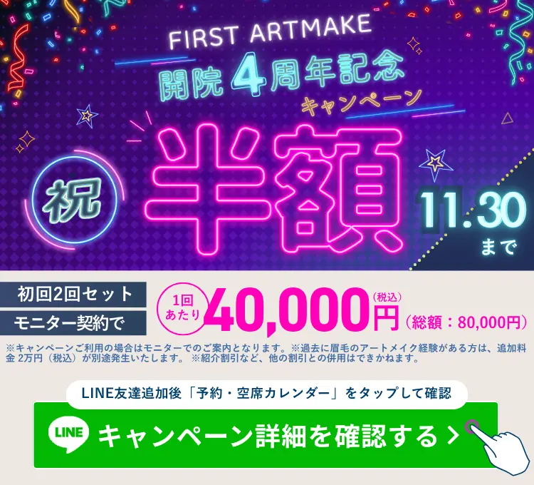 FIRST ARTMAKEはモニター施術件数国内トップクラスの弊社スクール卒業後、独自の厳しい審査・テスト(技術・対応力など)をクリアしたアーティスト(全員看護師資格保有)のみが在籍できるクリニックです。